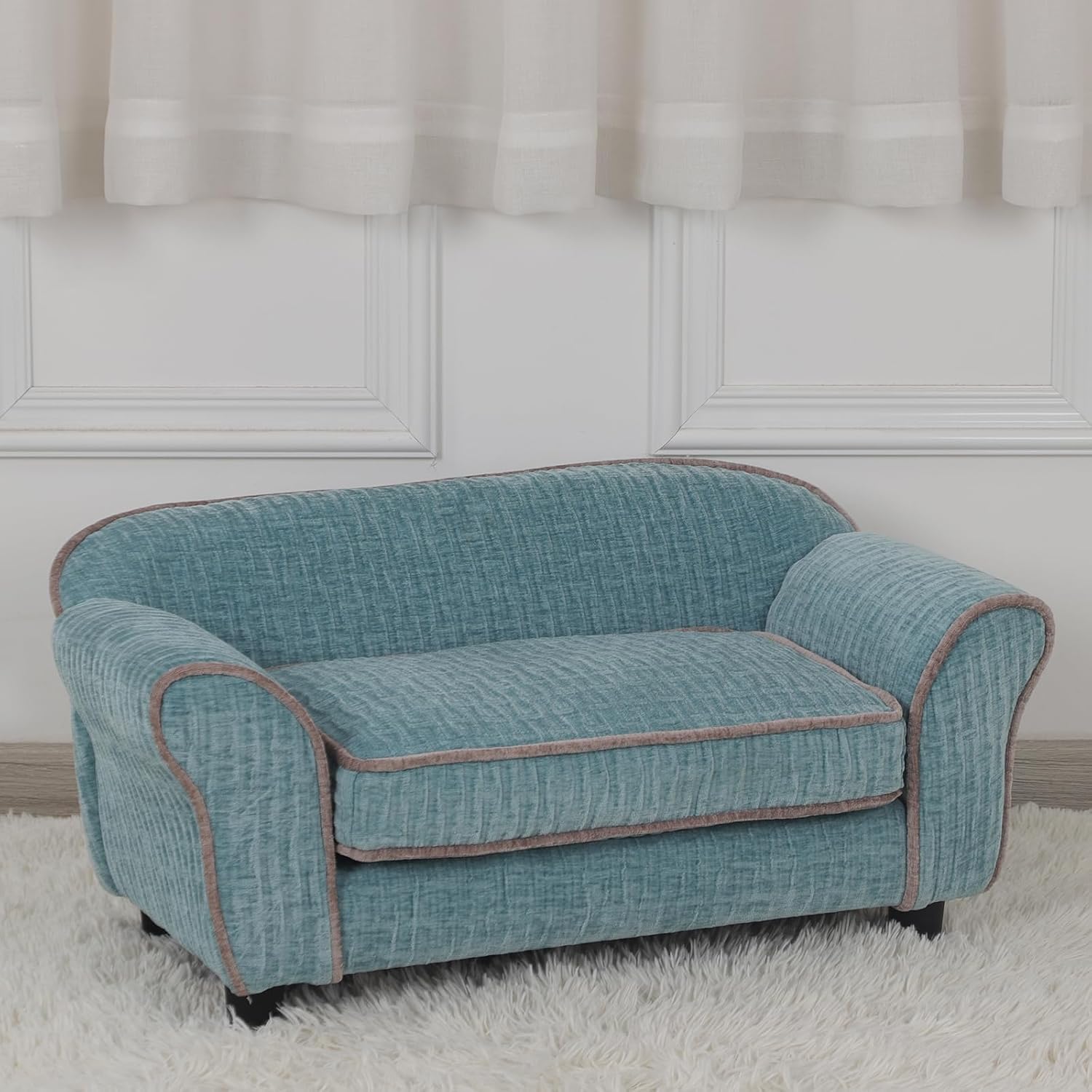 Pet Sofa/Dog Bed with Luxury Striped Fleece Pet Bed Animal Sleeping Bed, Small Dog and Cat Couch Bed (Light Green)
